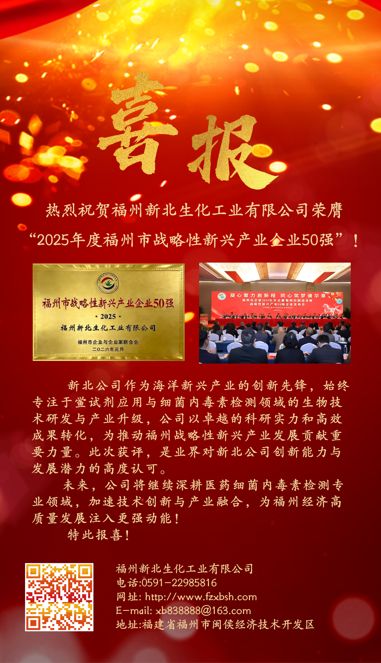 热烈祝贺福州新北生化工业有限公司荣膺 “2025年度福州市战略性新兴产业企业50强”!